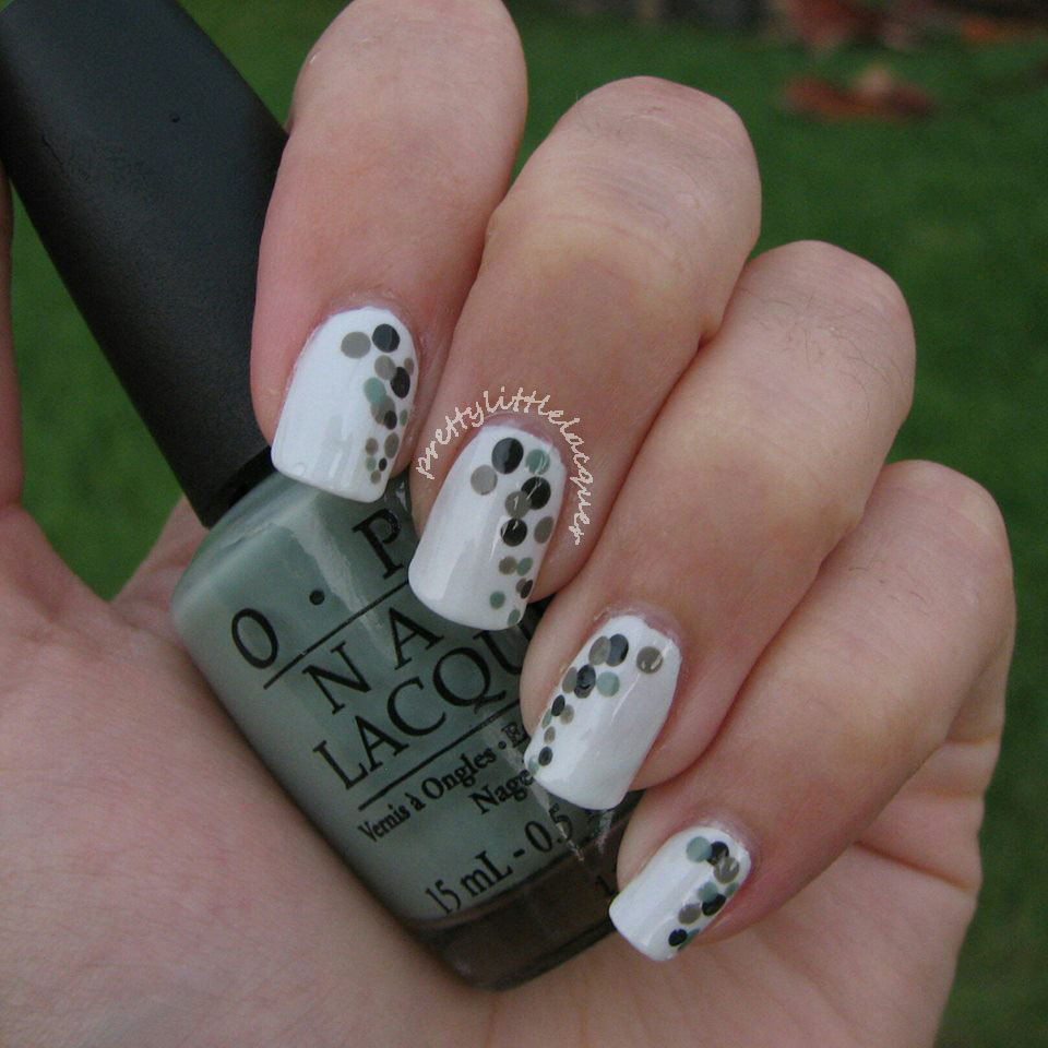 Hi there! It’s a state holiday today so I have the day off, yay! Day 15, a delicate print, was a difficult task to interpret. Again I tried to keep it very simple. I started with two coats of OPI Berlin There Done That. I placed glitter from OPI Lights Of Emerald City.