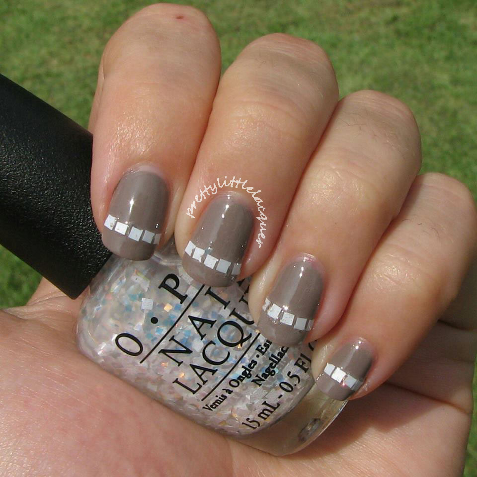 I used tweezers to place the glitter, which was a mistake. The tweezers picked up too much of the polish and some of it transferred when I tried to place the glitter squares. I watched a great video on the OPI facebook. A toothpick was used to place pieces of glitter. I will try this the next time I want to do this nail art again.