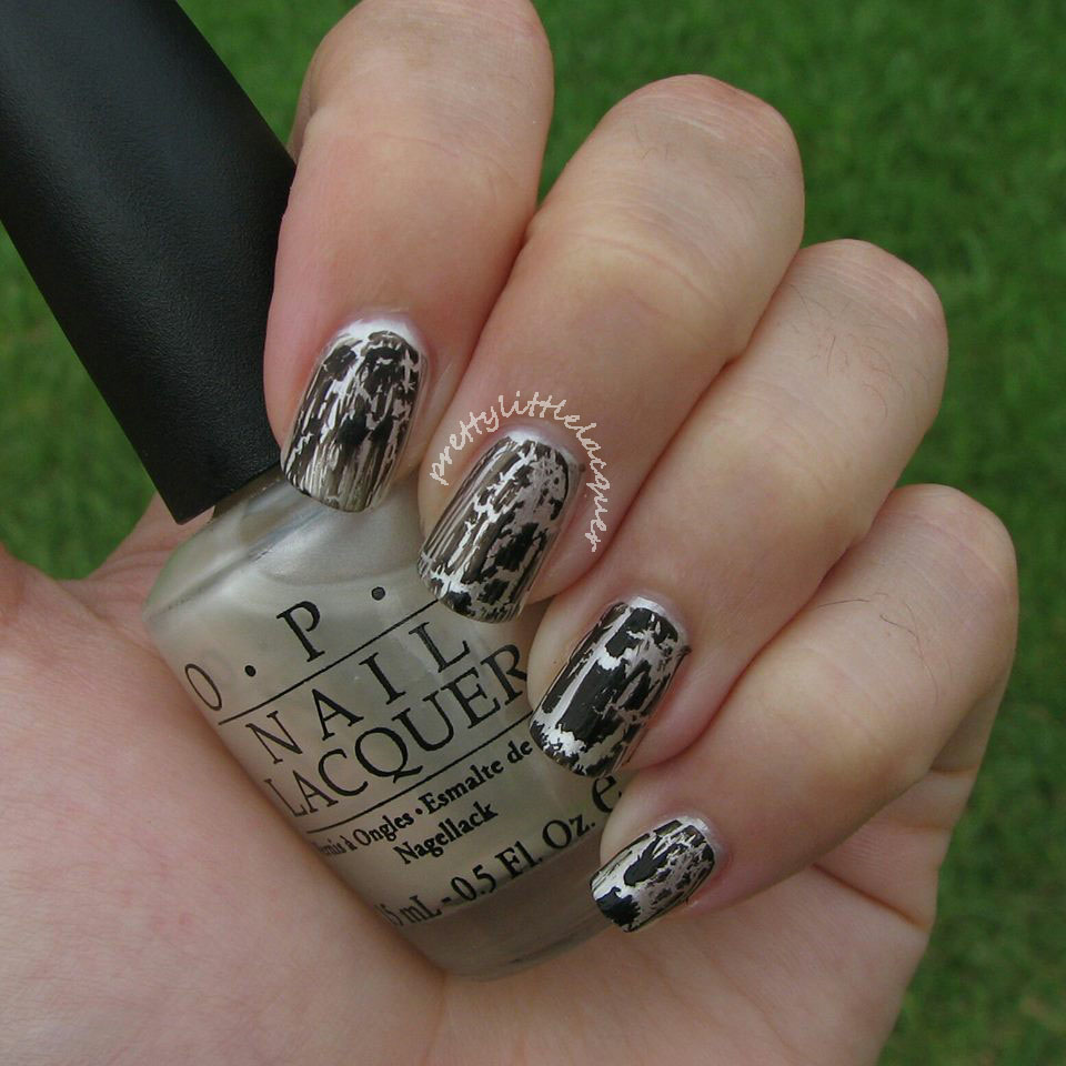 OPI Black Shatter over OPI Kyoto Pearl