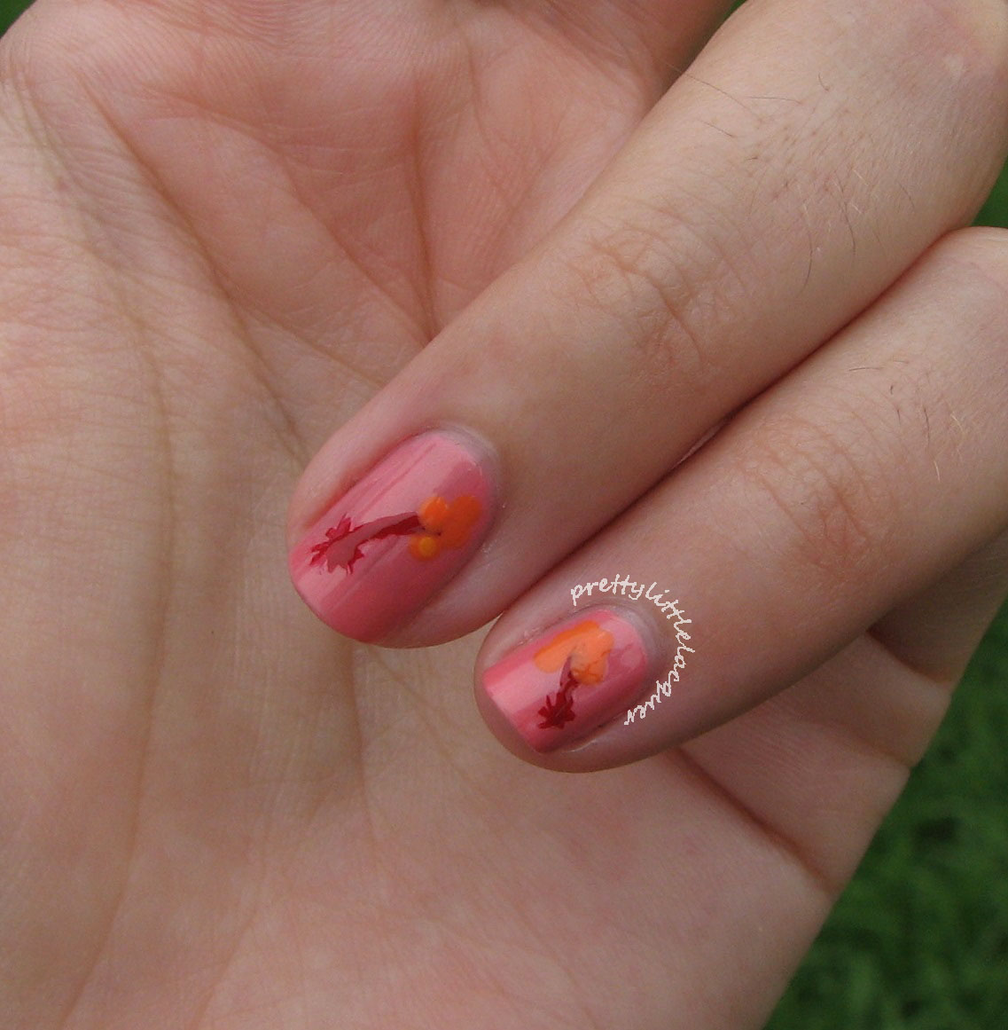 The above was my finished product. I first wanted to use OPI In My Back Pocket for the pollen since pollen tends to be more orange. This blended too much with A Dozen Rosas and didn’t give me enough contrast. You can see below the lack of contrast. I almost forgot to get pictures before I covered the first “pollen” with the new “pollen” that’s why only my ring finger and pinky are pictured.
